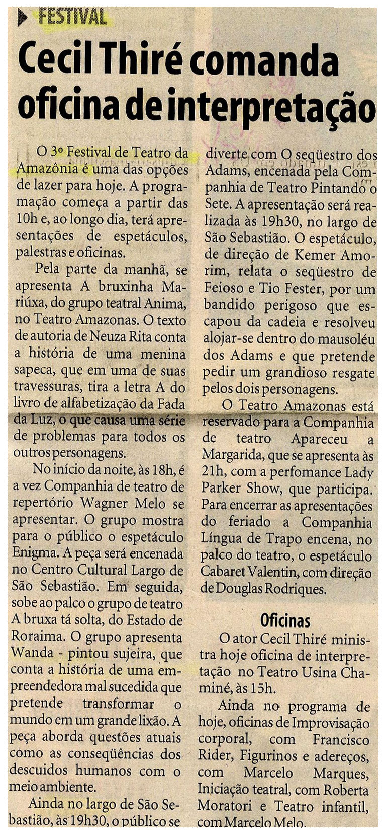 Festival, Oficinas, Terceiro Festival de Teatro da Amazônia, Palestras, Largo, Teatro Amazonas, Cecil Thiré