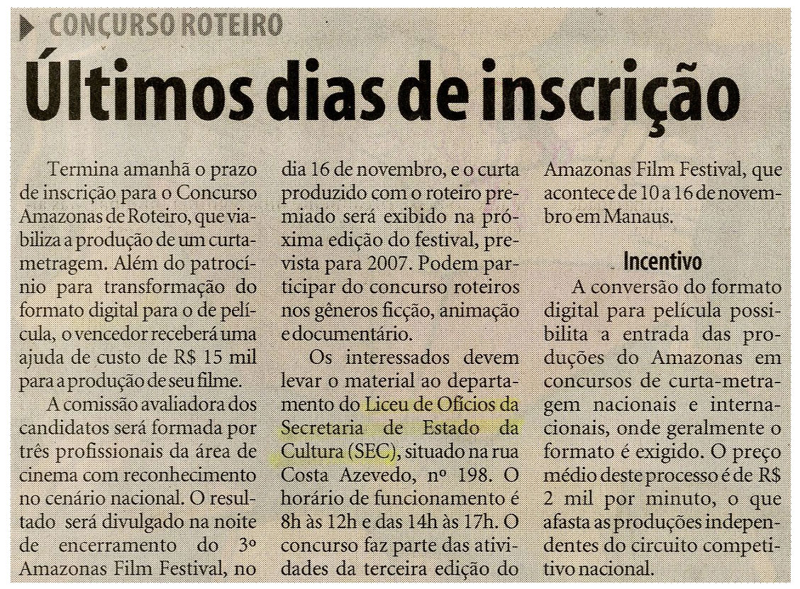 Concurso, Roteiro, Inscrição, Amazonas de Roteiro, Produção, Curtametragem, Formato Digital, Película, Filme, AFF, Cinema, Liceu, SEC, Incentivo