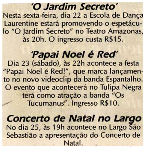 Escola de Dança Laurentine, Espetáculo, Teatro Amazonas, Papai Noel, Lançamento, Concerto de Natal, Largo São Sebastião