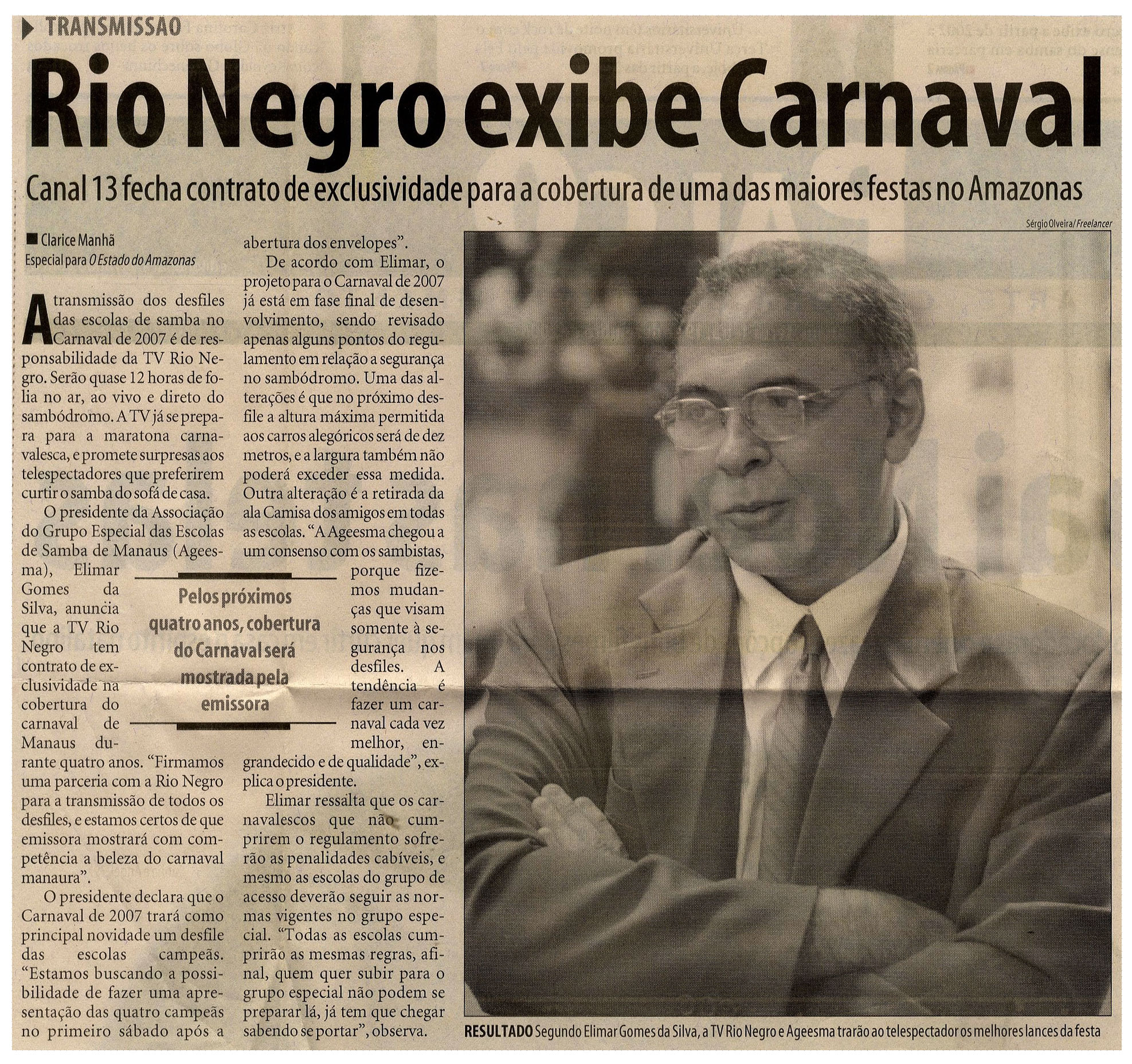 Transmissão, Canal 13, Escolas de Samba, Tv Rio Negro, Ageesma, Carnaval, Elimar Gomes