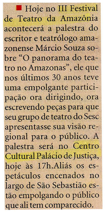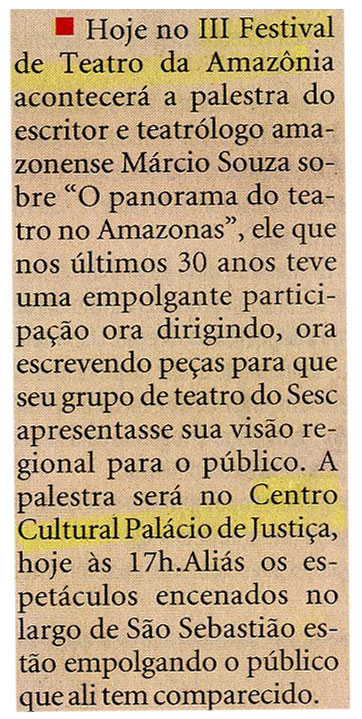 Terceiro Festival de Teatro, Palestra, Escritor, Teatrólogo, Márcio Souza, Palácio da Justiça, Espetáculos, Largo