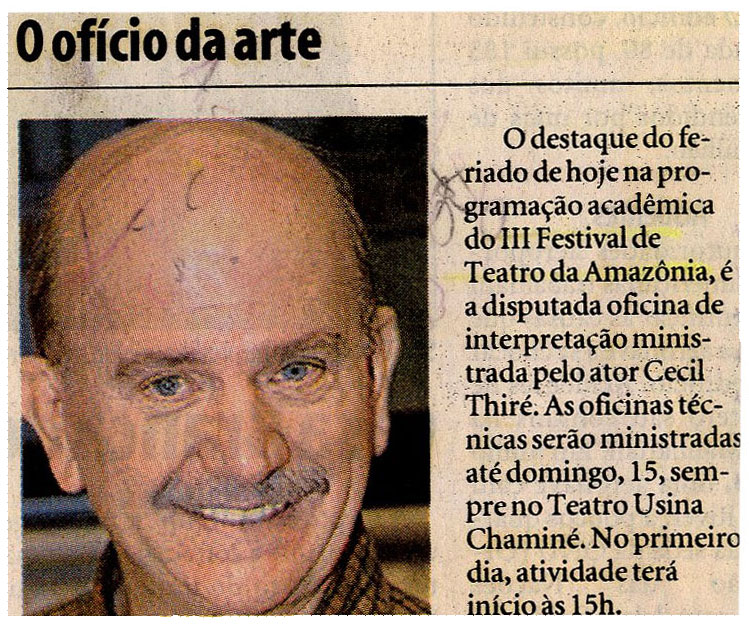 Terceiro Festival de Teatro, Oficina, Interpretação, Cecil Thiré, Usina Chaminé, Programação Acadêmica