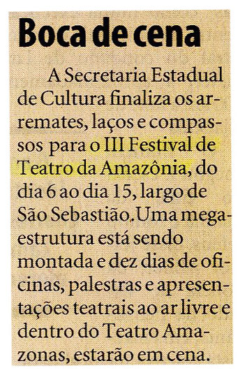 Sec, Terceiro Festival de Teatro da Amazônia, Largo, Oficinas, Palestras, Apresentações, Teatro Amazonas