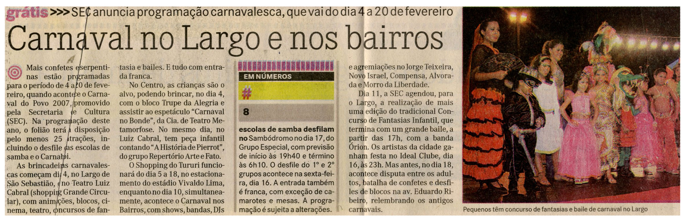 Sec, Programação, Carnaval, Largo São Sebastião, Fantasias, Sambódromo, Escolas de Samba
