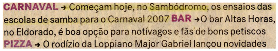 Carnaval, Sambódromo, Ensaios, Bar Altas Horas, Loppiano