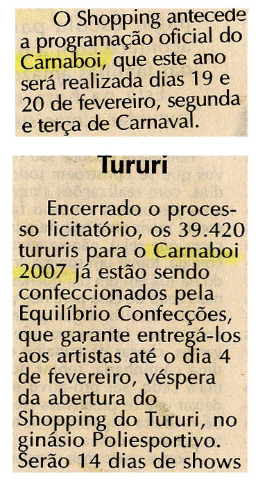 Carnaboi, Programação, Carnaval, Tururi, Processo Licitatório, Shows