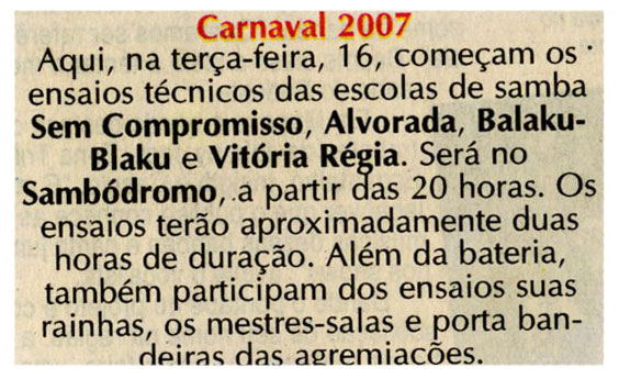 Carnaval, Ensaios Técnicos, Escolas de Samba, Sambódromo