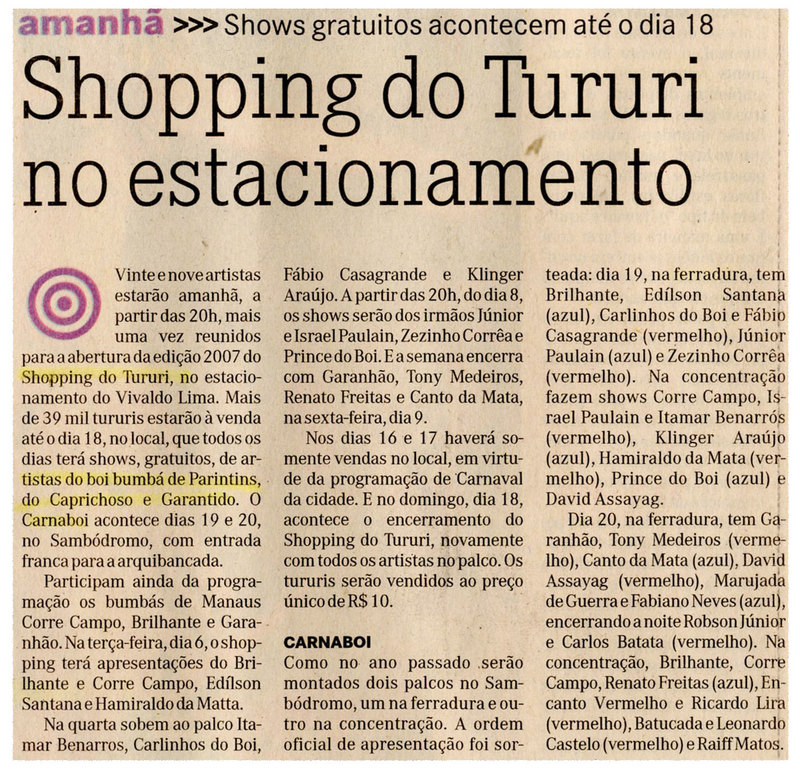 Shopping do Tururi, Boi Bumbá, Parintins, Caprichoso, Garantido, Carnaboi, Sambódromo