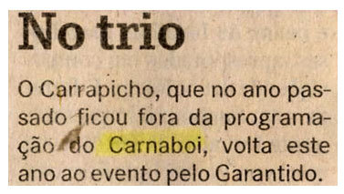 Carrapicho, Programação, Carnaboi, Evento, Garantido