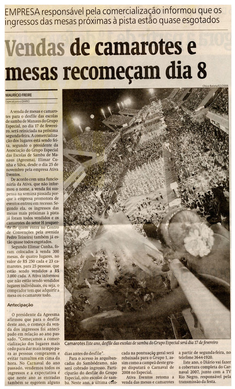 Camarotes, Mesas, Ingressos, Escola de Samba de Manaus, Ageesma, TV Rio Negro