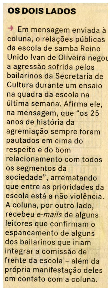 Escola de Samba, Reino Unido, Agressão, Bailarinos, Sec
