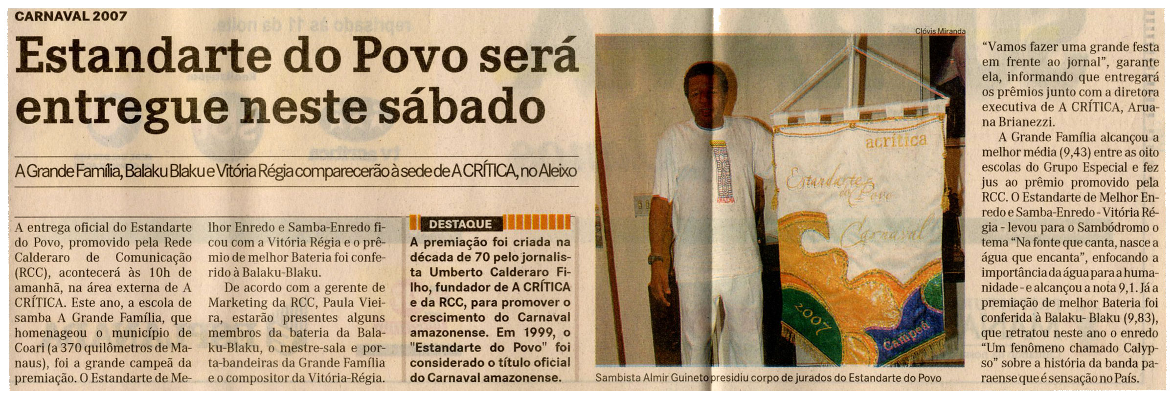 Estandarte do Povo, Carnaval 2007, A Grande Família, Balaku Blaku, Vitória Régia, Premiação