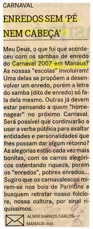 Carnaval 2007, Enredo, Carnavalesco, Boi, Parintins, Cultura