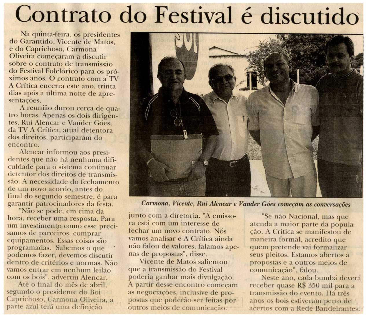 Contrato, Festival de Parintins, Presidente, Carmona, Vincente Rui Alencar, Vander Goés