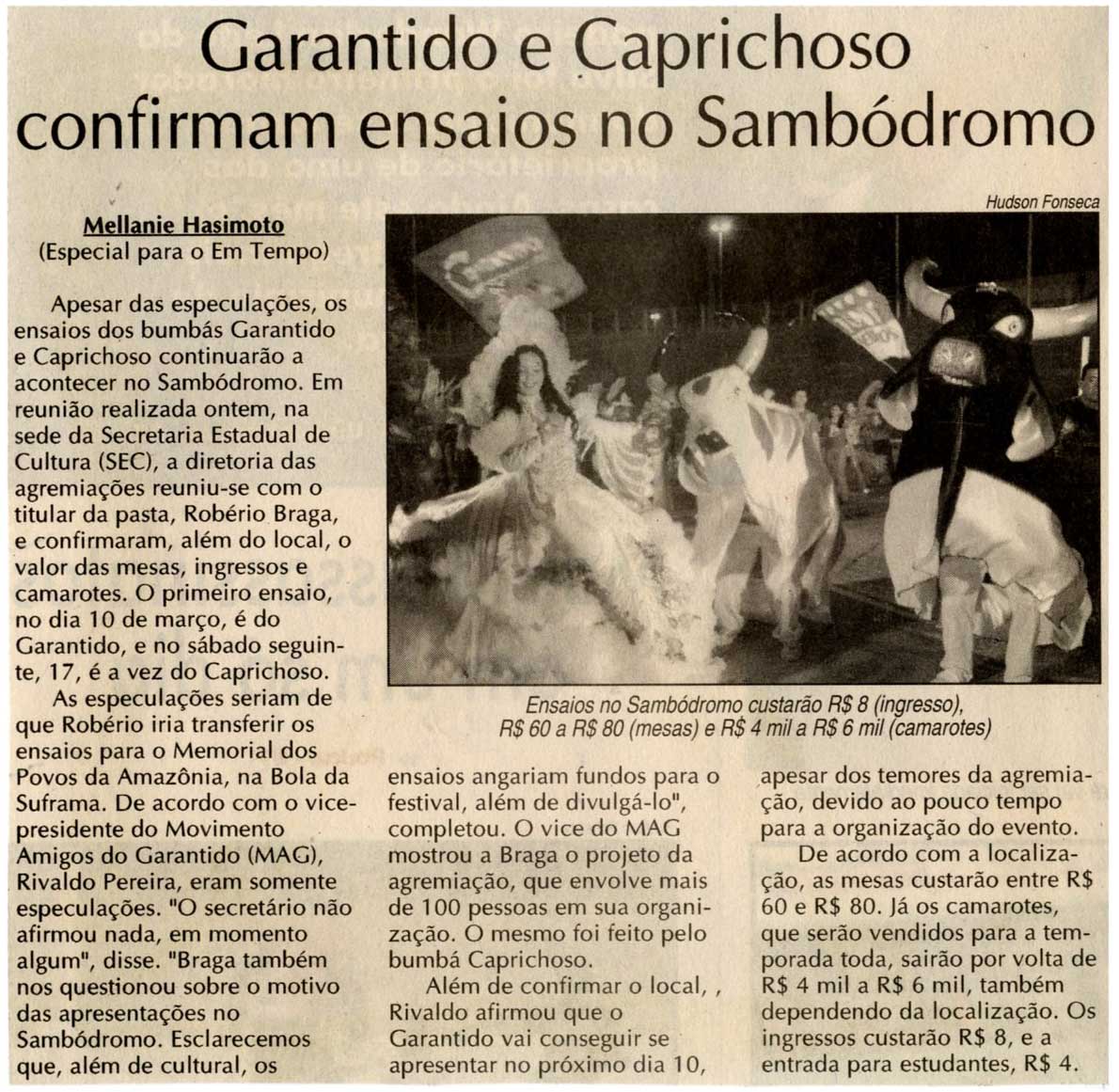 Ensaios, Garantido, Caprichoso, Sambódromo