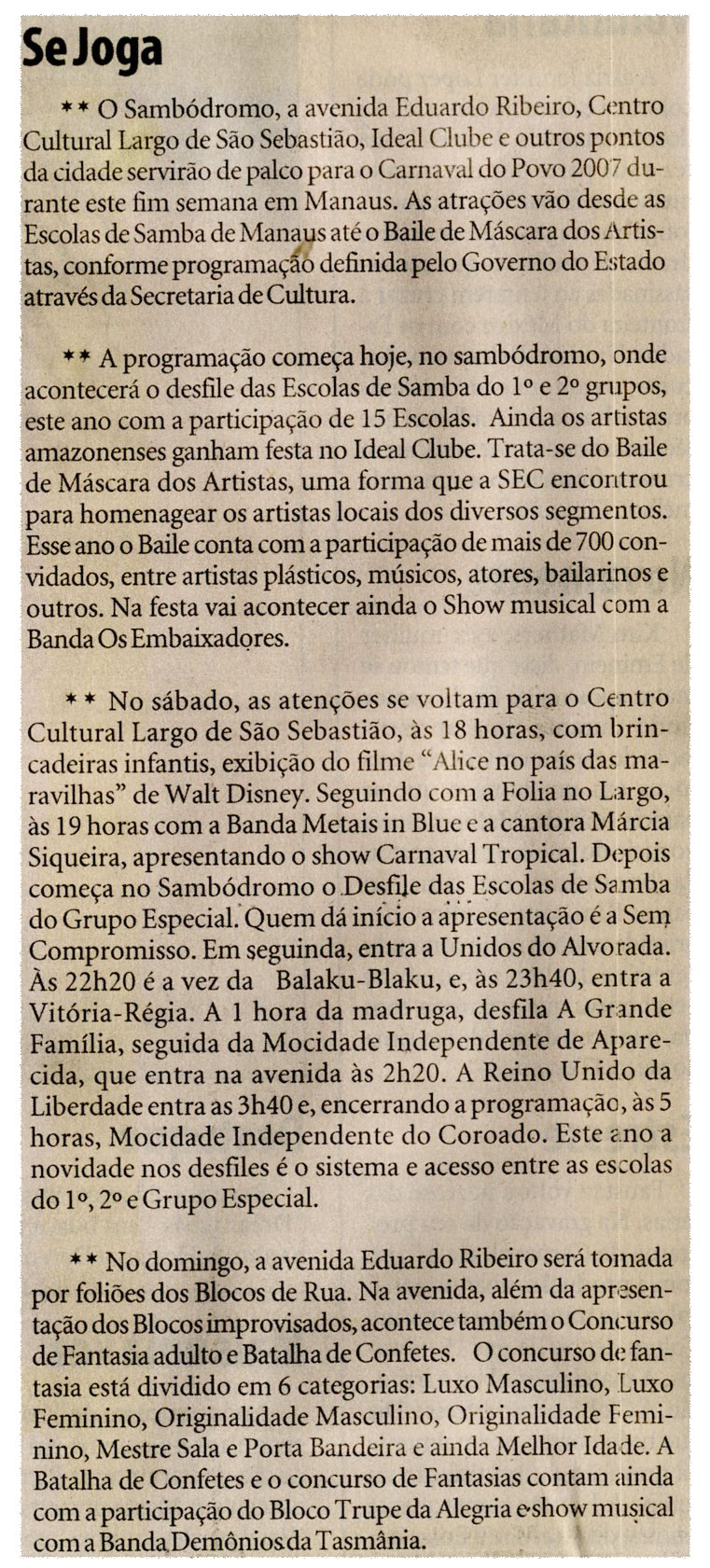 Carnaval, Escolas de Samba, Baile de Máscara. Programação, Sec, Sambódromo, Ideal Clube, Largo São Sebastião