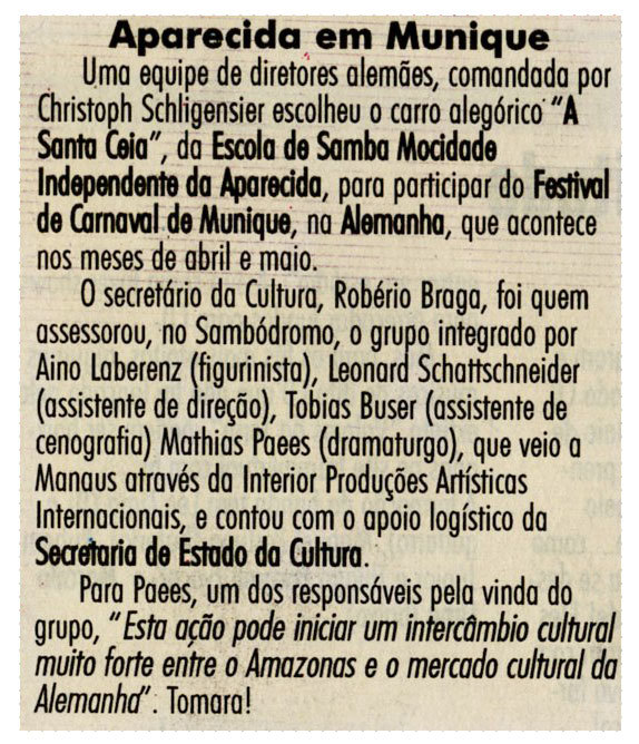 Aparecida, Escola de Samba, Festival de Carnaval, Alemanha, Robério Braga, Sec