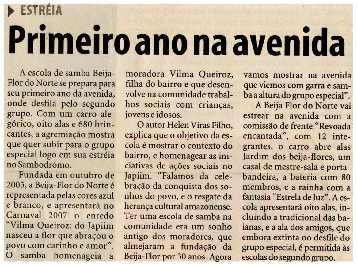 Escola de Samba, Beija Flor, Agremiação, Sambódromo, Estréia