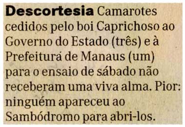 Boi-Bumbá, Caprichoso, Camarotes, Governo do Estado, Prefeitura, Ensaios, Sambódromo, Ausência de Autoridades