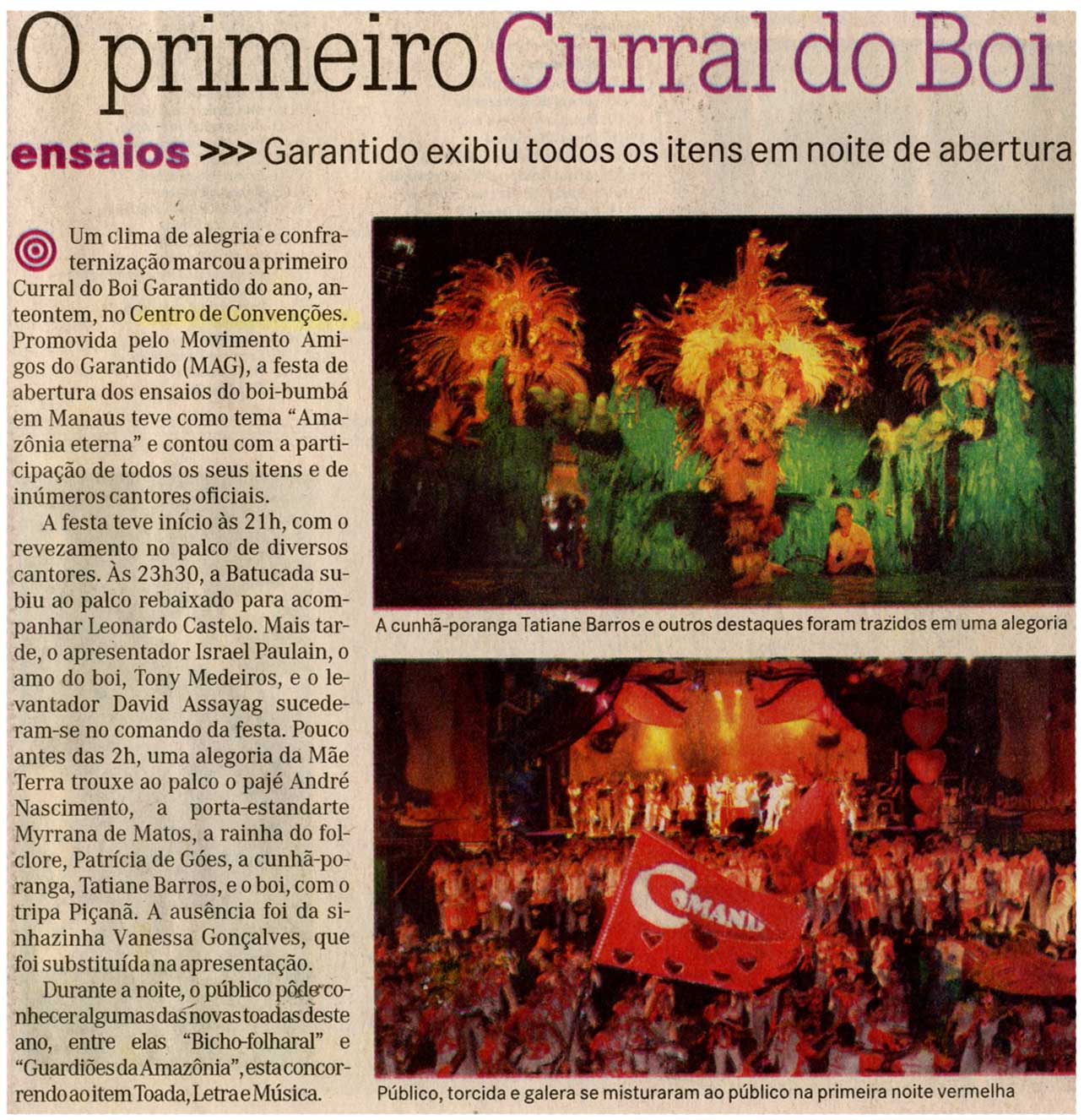 Boi-Bumbá, Garantido, Abertura, Ensaios, Curral, Centro de Convenções, Levantadors de Toadas, Batucada