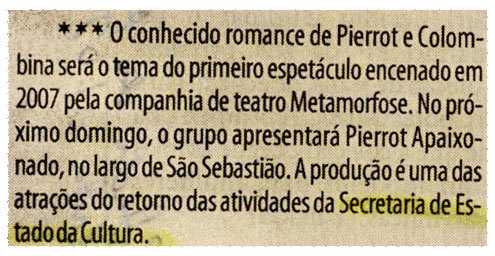 Romance, Espetáculo, Cia Metamorfose, Largo São Seabstião, Sec
