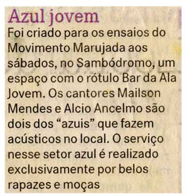 Ensaios, Movimento Marujada, Sambódromo, Cantores, Bar da Ala Jovem