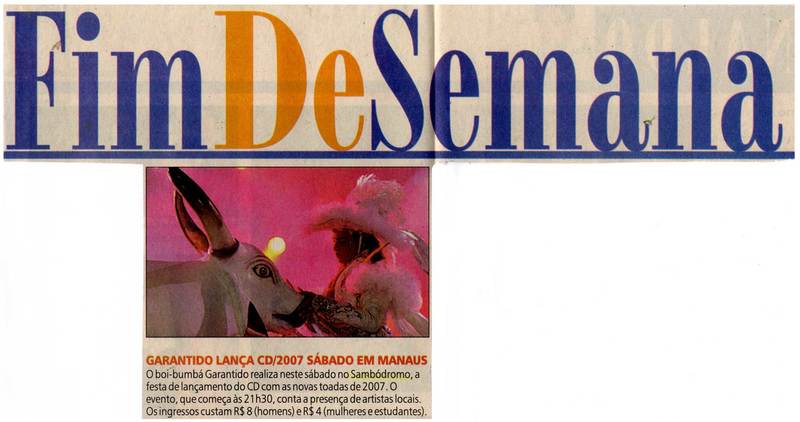 Garantido lança CD/2007 sábado em Manaus