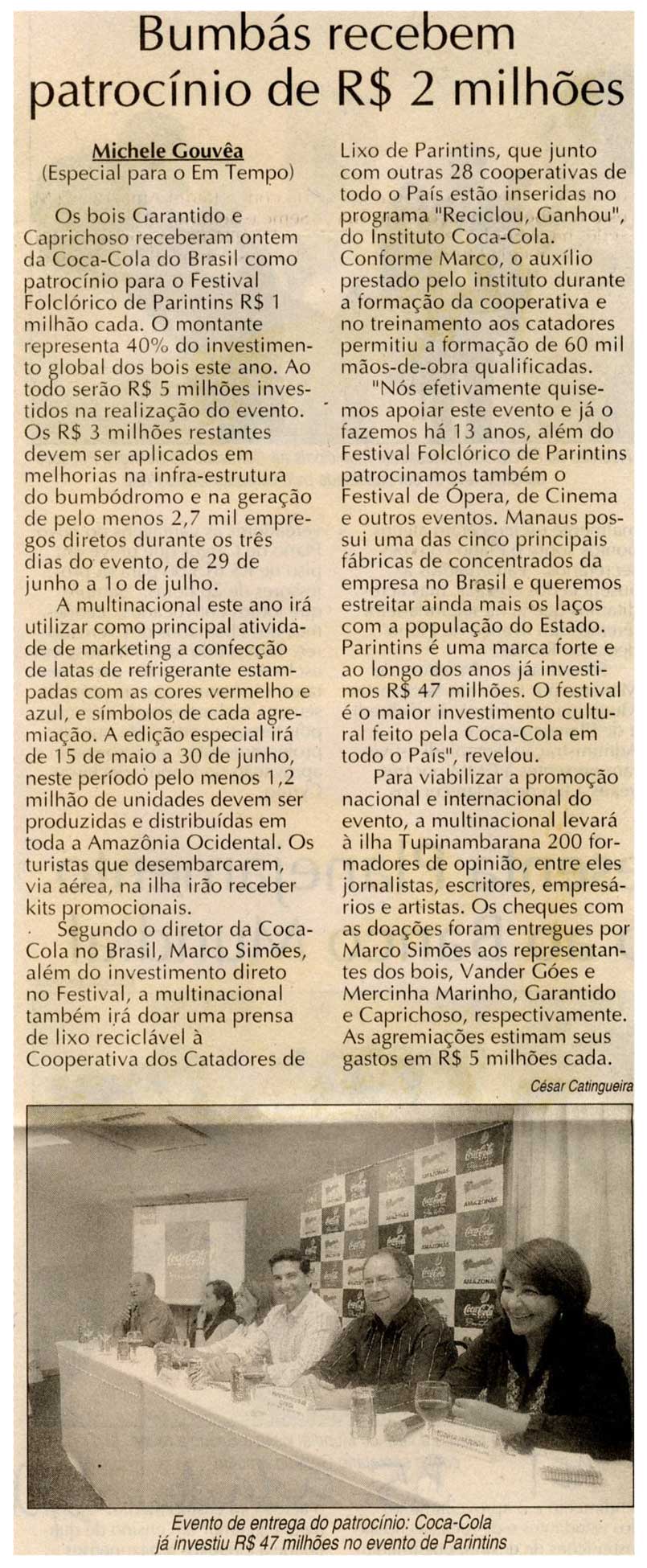 Boi Bumbá, Patrocínio, Festival de Parintins, Coca Cola, Investimento, Cooperativa, Festival de Ópera, Cinema, Marco Simões