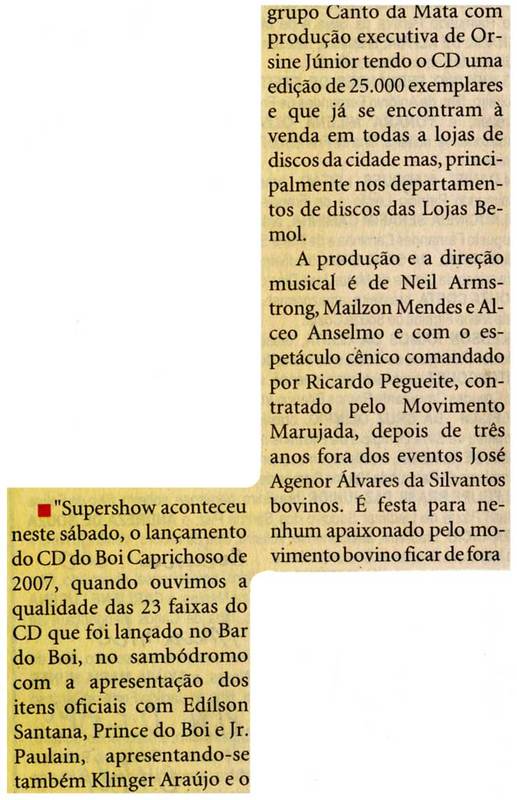Boi-Bumbá, Caprichoso, Lançamento CD, Sambódromo, Apresentações