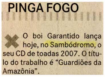 Lançamento, Garantido, Sambódromo, Toadas