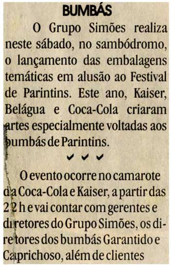Grupo Simões, Sambódromo, Festival, Parintins, Artes, Coca-cola, Kaiser, Bumbás, Garantido, Caprichoso, Evento