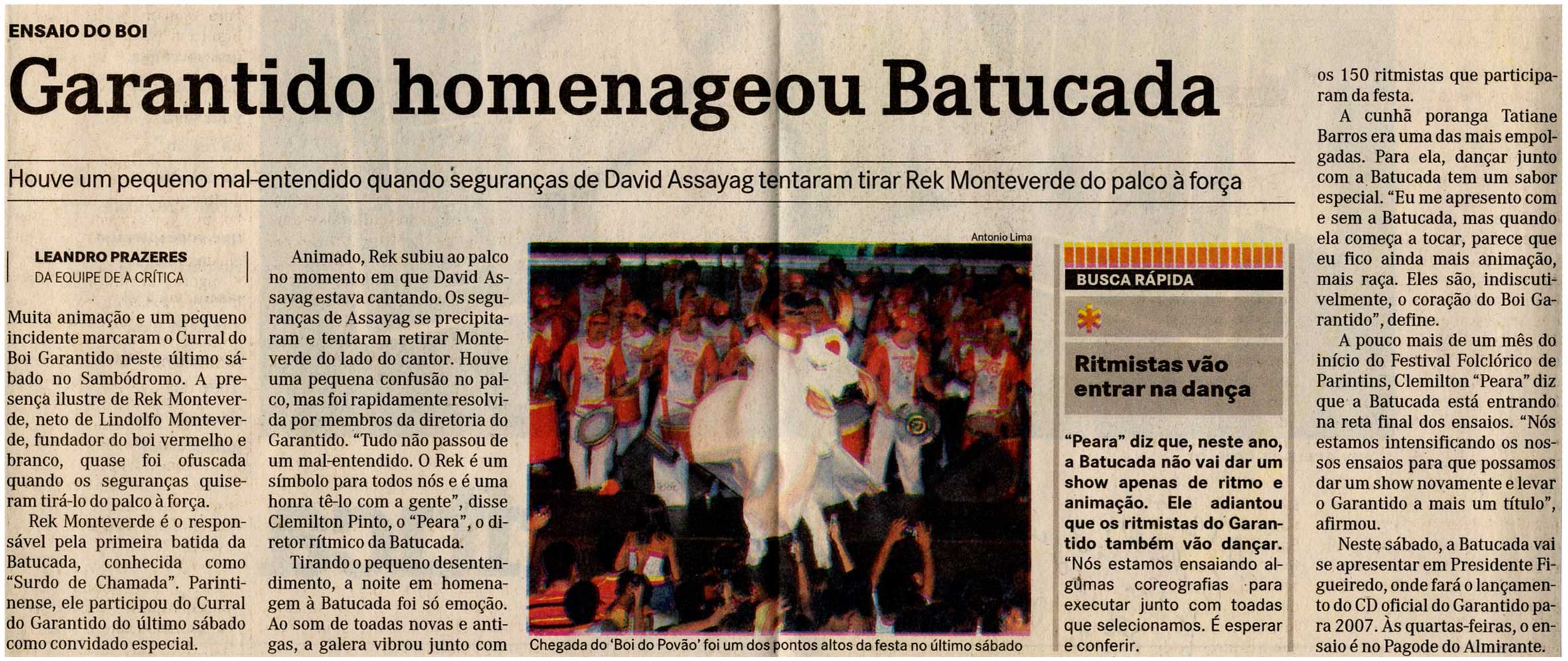 Garantido, Batucada, Rek Monteverde, David Assayag, Homenagem