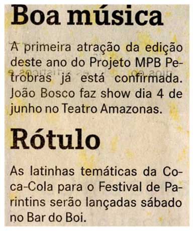 Projeto Mpb Petrobrás, João Bosco, Teatro Amazonas, Coca Cola, Parintins